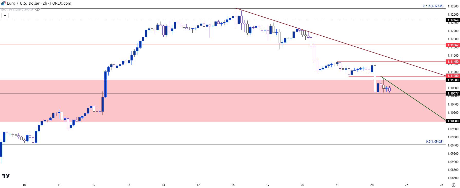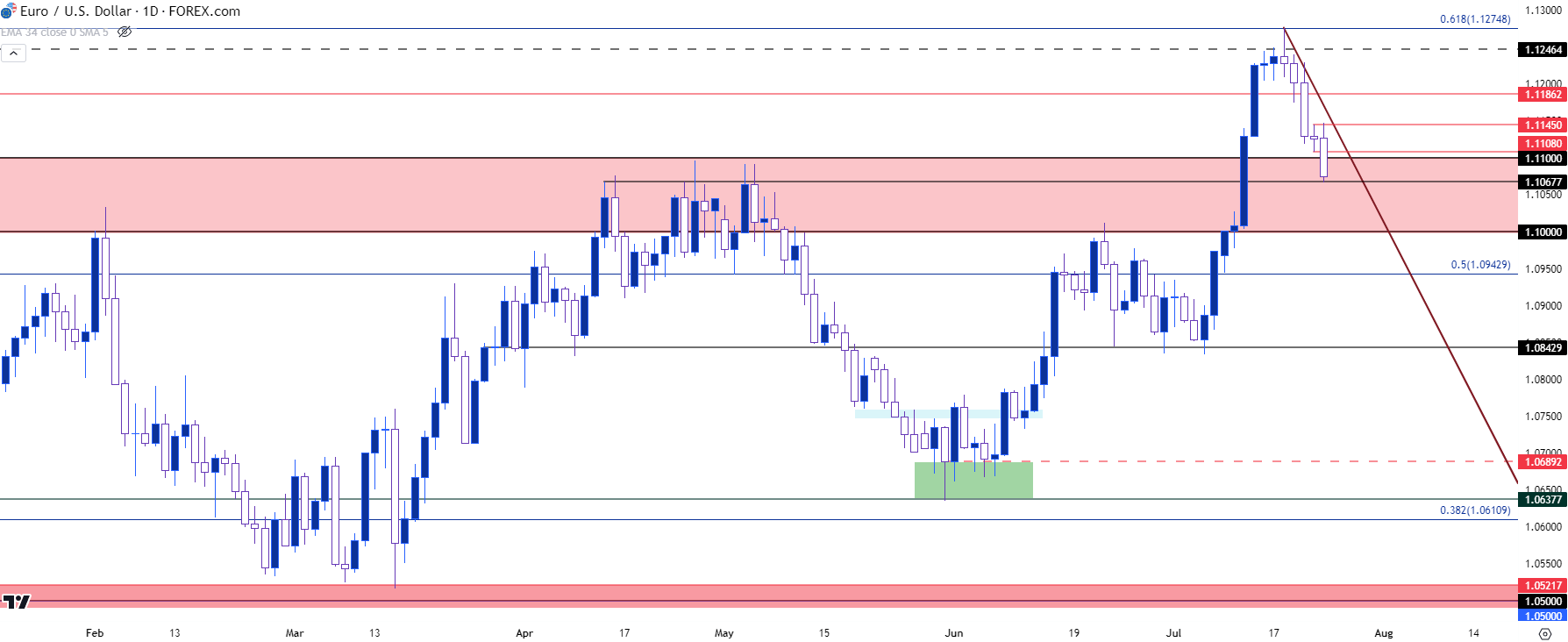 图表由James Stanley绘制,Tradingview上的欧元/美元
